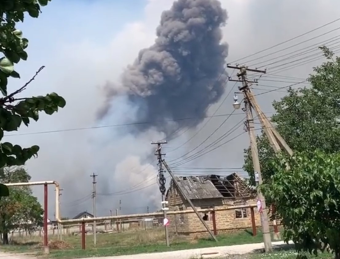 Útok dronů na vojenské letiště na Krymu, muniční sklad v plamenech