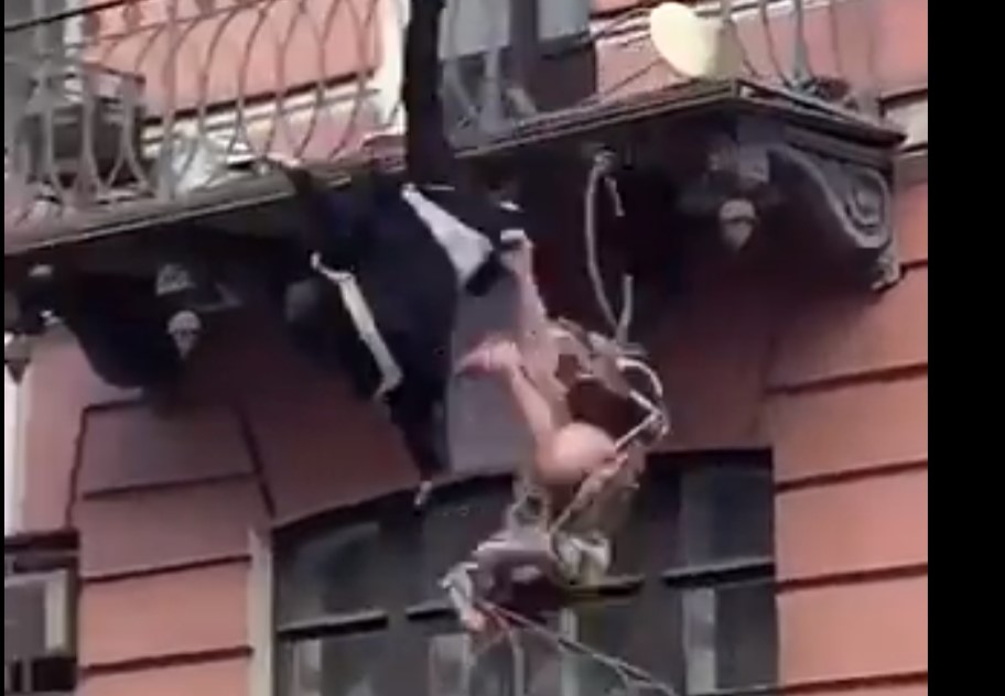 Záhadné video z Ruska ukazuje pár, který propadne z balkonu