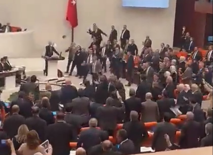 „Jste děti USA!“ Tureckým parlamentem létaly předměty po výroku ministra