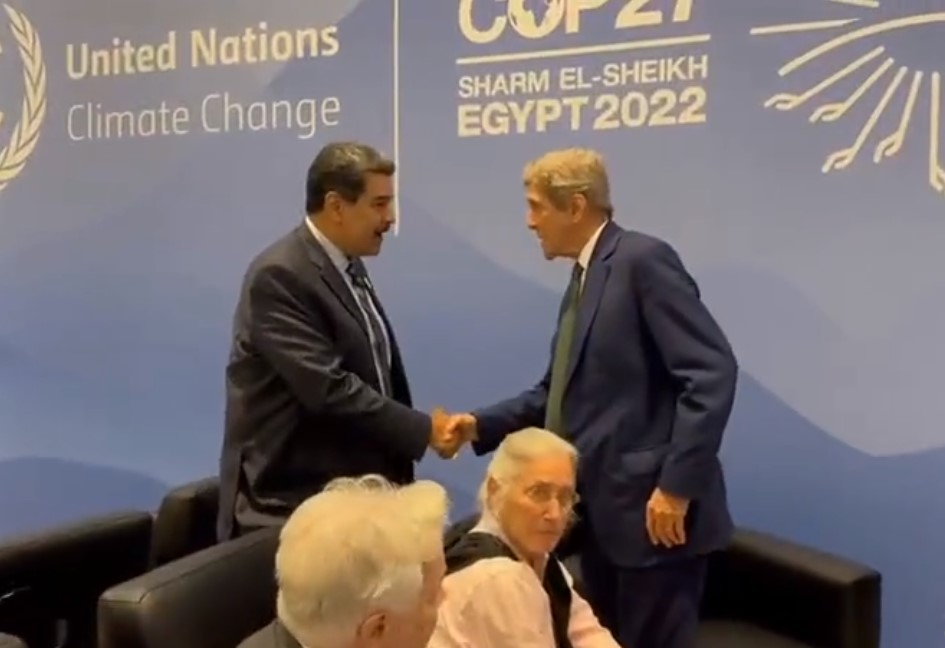 Maduro byl v roce 2020 dán na seznam hledaných osob USA, nyní si potřásá ruku s Kerrym