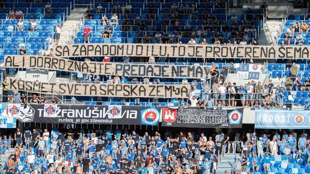 UEFA (Únia európskych futbalových zväzov) sa rozhodla potrestať ŠK Slovan Bratislava vylúčením obecenstva v najbližšom zápase pohárovej Európy a finančnou pokutou 50 000 eur. Slovan má byť potrestaný za neželateľné prejavy politického charakteru, ktoré sa vyskytli v hľadisku na bratislavskom Tehelnom poli počas zápasu Európskej ligy UEFA s majstrom Kosova.