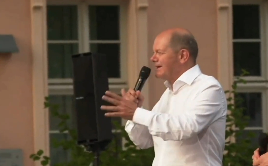 Německý kancléř Olaf Scholz, který v Neuruppinu pocítil hněv lidu, vypískal a hecoval: „Lháři, zrádče! Jdi pryč!“ (Foto: Twitter)