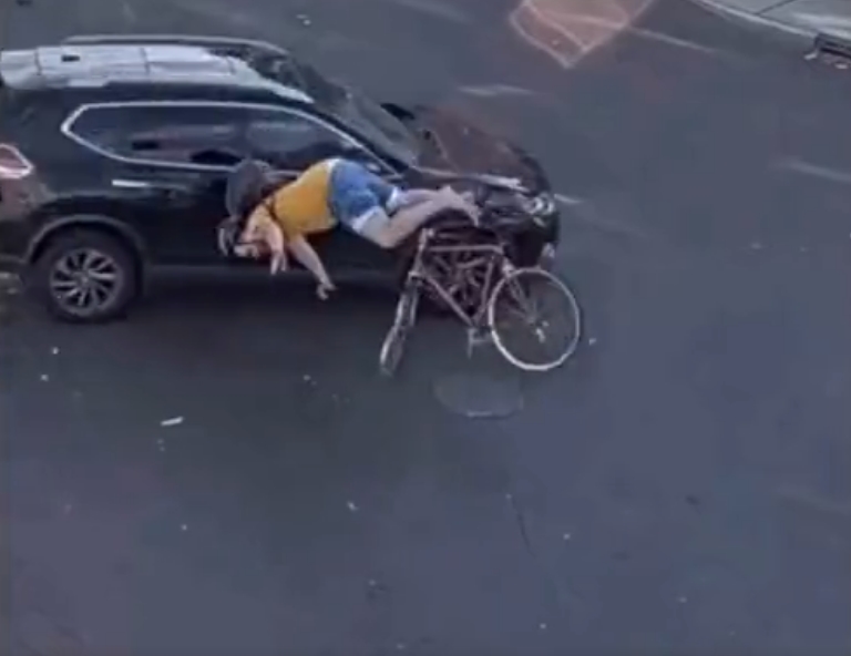 USA – Demokratická radní DeGiseová z Jersey City čelí výzvám k rezignaci poté, co ji údajně zachycuje video, na němž srazila autem cyklistu a poté z místa nehody ujela. (Foto: Twitter)