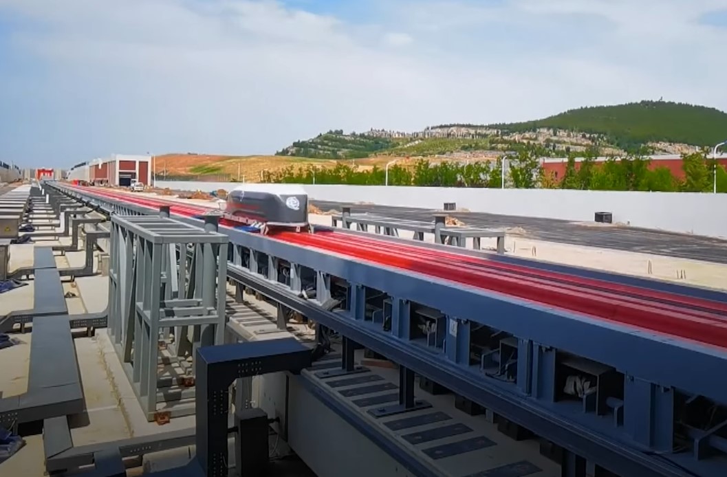 První pozemní experimentální zařízení pro superrychlost poháněné elektromagnety na světě v inovační zóně Ťi-nan ve východočínské provincii Šan-tung zahájilo provoz. (Foto: Youtube)