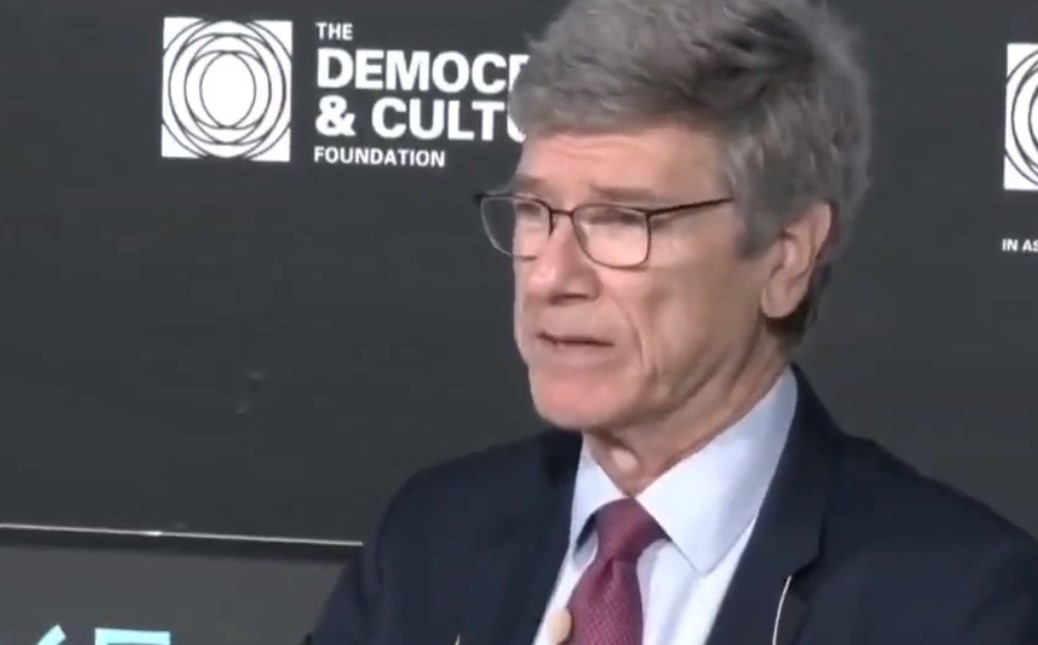 Známý americký ekonom Jeffrey Sachs na Aténském fóru o demokracii v září 2022 uvedl, než byl přerušen moderátorem: (Foto: Twitter)