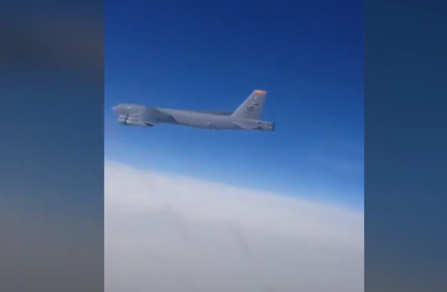 Dramatické záběry ukazují okamžik, kdy ruská stíhačka zachytila dva americké jaderné bombardéry B-52 nad Baltským mořem. (Foto: Youtube)